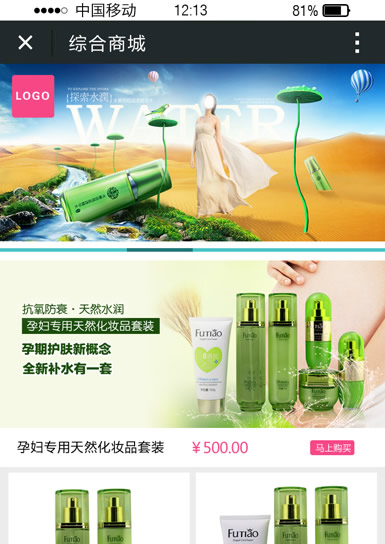 首页多张精美图片展示,支持手指触控,让您的客户摸得到您的产品,体验更流畅